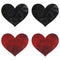 For whatever the occasion, Peekaboos Pasties has the perfect pasty for you. The high-quality, detailed pieces of the Peekaboos Pasties collection provide a vast assortment of styles. 2 Sets of heart pasties One shimmery red, the other black with shiny black lip patterns Self-adhesive pasties cover nipples for sexy coverage