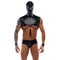 Short hooded top, thong, leash and 2 wrist cuffs in a set from Svenjoyment BONDAGE. The noble black matte look nestles close to the skin. The top only covers the top of the chest and features a clever hood that can be completely closed with a 2-way zip perfectly enclosing the head. The included leash can be attached to a ring at the front of the neck with its snap hooks. The thong has an underlaid zip at the front. The included wrist cuffs can be attached to the ring on each side of the waistband with its practical snap hook chains. The adjustable hook-and-loop fasteners on the restraints allow for pleasurable bondage games. Bondage set in an elegant matte look Short hooded top with a thong Includes a leash and 2 wrist cuffs Closable hood with a 2-way zip Ring at the front of the top for the leash Thong with an underlaid front zip Rings for the wrist cuffs at the sides of the thong Soft and stretchy for high comfort With intricate details for bondage games! 90% polyester, 10% spandex.