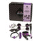The bondage kit Includes 1 Vegan leather whip, Be naughty and let the game begin! 2 Sets of wrist and ankles cuffs. Forget your to-do list, youre tied up! Pair of adjustable bell nipple clamps. Surprise your lover with a sexy dance that leaves your tits jingling! 1 Breathable ball gag. The ideal solution for noisy submissive lovers! 1 Bondage rope of 10 m. It is extremely soft, manageable and safe restraint to practice all the ties and suspensions. 1 Blindfold. Put it on to turn out the lights and enter an unknown world where the caresses, the whispers, and the scents are perceived with maximum intensity. 1 Buckle-fastened collar with strap. Plush lining is added to both wrist, ankles, cuffs, and collar, to ensure wear is chafe-free and comfortable.