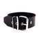 Wide leather collar with an adjustable strap and roller buckle closure. 50mm in width.