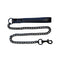 Leather lead with a black colour metal chain and a trigger hook on one end. All black with black Accessories.
