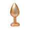 The Gleaming Love collection presents this medium-sized gold pearl-finished plug with a gemstone. Made of smooth lightweight aluminium and seamless, this pleasure toy is easy to glide and the flared base ensures a sense of security while keeping the jewel sitting comfortably between the butt cheeks. This jewelled plug is beautifully decorated with a delicate heart-shaped gemstone. From tip to base the seamless anal plug features a pearlescent sheen that pairs wonderfully with the sparkle of the matching gemstone. The tapered bulb shape of the plug combines ease of use with erotic backdoor pleasure. The Gleaming Love plug can be heated or cooled in water before use to provide additional sensations. A storage bag made of soft velvety fabric that closes with a drawstring is included. Length 8.3 cm Diameter 3.4 cm