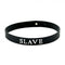 Black silicone adjustable collor. The word SLAVE is wrote on the front of the collor in white letters.