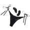 The perfect accessory for your little black dress. Stretch to fit sexy lace thong with adjustable satin ties and a secret pocket for secure bullet placement. Discreet and powerful remote control body forming curved bullet. 10 incredible functions of vibration, pulsation, and escalation. Customize your fit with satin ties. 19.5 m range.