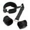 Black soft velcro mouth gag with adjustable strap to detachable soft velcro cuffs.