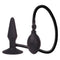 A pliable and durable silicone inflatable plug with superior suction cup base an easy squeeze bulb and quick air release valve. 4.5 inches by 1.25 inches before inflating, doubles in width once inflated