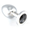 Large heavy smooth aluminium butt plug with a black crystal at the base to accentuate the bottom. Comes in a black presentation box.